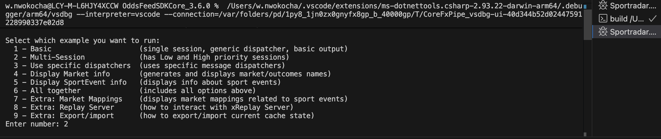 To test the SDK examples, select the corresponding number from the list displayed in the terminal.\