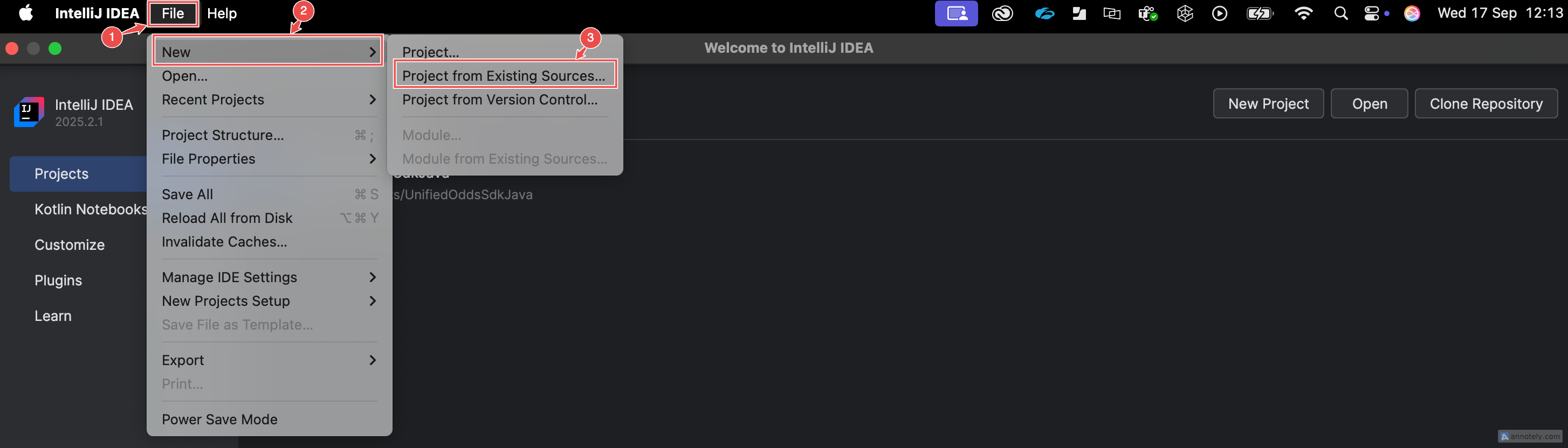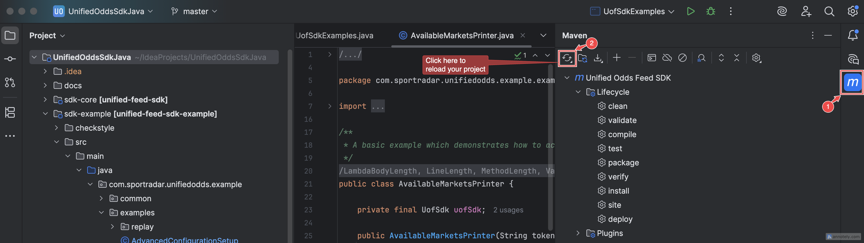 src/main/java/.../UofSdkExamples.javaimport com.sportradar.unifiedodds.sdk.OddsFeed;